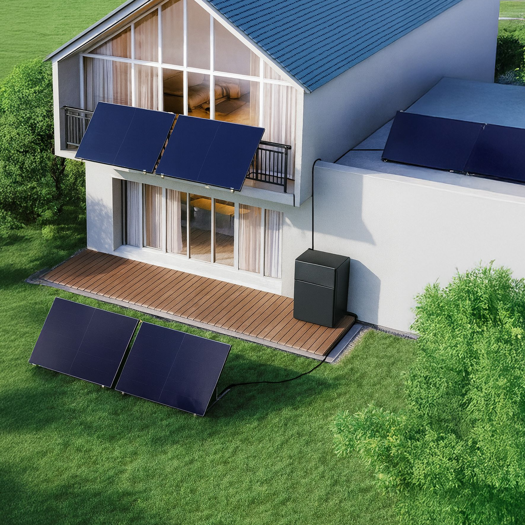 U kunt een plug-in zonnepanelen set op verschillende plaatsen installeren, op een balkon of gevel, een tuinhuis, tuin, terras, plat dak, een zonnig stuk grond…. Het belangrijkste is om een locatie te kiezen die is blootgesteld aan de zon en zo is gekanteld dat de maximale output wordt geproduceerd op de momenten die u wilt, waarbij schaduw moet worden vermeden en ervoor moet worden gezorgd dat u voldoet aan alle plaatselijke of gemeentelijke voorschriften. Het gebruik van verlengsnoeren of stekkerdozen wordt afgeraden.